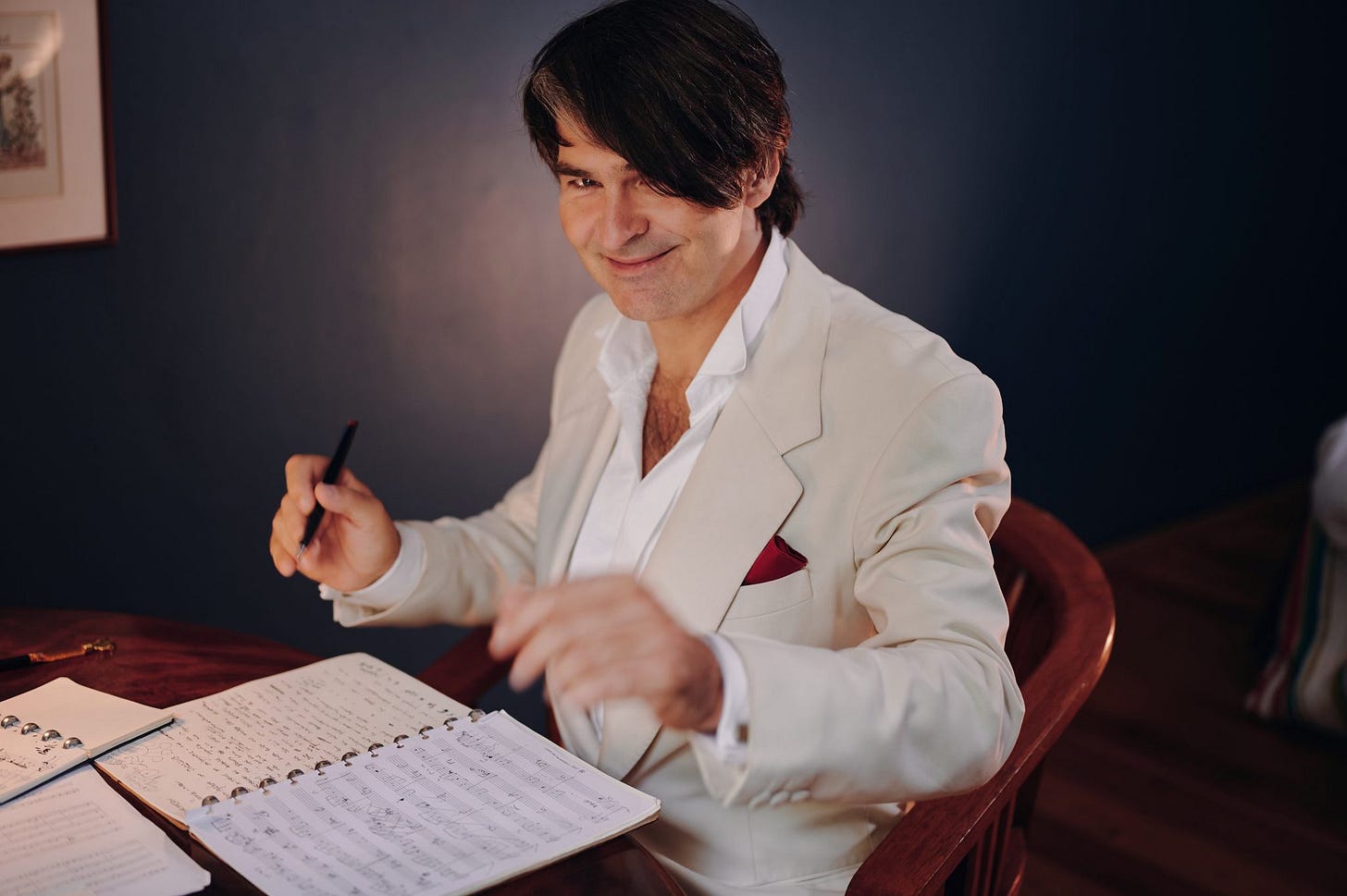 „Ich bin Mark Scheibe, Komponist, Songwriter und romantischer Sänger am Klavier. Andere sagen, ich sei ein Flaneur, Dandy oder Träumer. Ich wohne schließlich im Hotel. Nach jeder 7. Übernachtung schreibe ich hier – über West-Berlin, Charlottenburg, das Leben im schönsten Boutiquehotel in der Nähe vom Bahnhof Zoo, über Begegnungen mit Gästen und was mir in meinem Künstlerleben als ‚Artist in Residence‘ in meiner Suite und beim Frühstück widerfährt.“