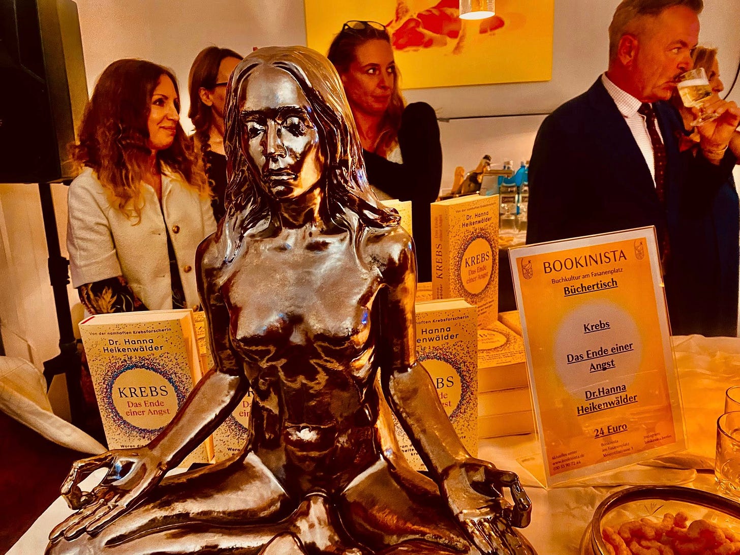 Hoffnung spendet Hanna Heikenwälder: In ihrem neuen Buch „Krebs – das Ende einer Angst“ erklärt uns die Molekularbiologin, wie wir dafür sorgen, dass mutierte Zellen keine Chance gegen uns haben. Ich war mit der Anfrage von Dr. Schreygers Kunstpalast, die Buchpräsentation mit Songs am Klavier zu ergänzen, ethisch überfordert: Nach einem Exkurs über die häufigste Todesursache der Welt dem leichenblassen Publikum mit meinen Songs „Keine Angst, es wird gut“ oder „C’est la vie“ das Elend verhöhnen? Es erschien mir unangemessen. Also so: Während der Buchvorstellung schrieb ich einen Liedtext, am Ende wurde dieser an die Wand projiziert – in einem spektakulären Schwarmintelligenz-Experiment haben wir alle gemeinsam diese Worte vertont – mit meiner Hilfe am Klavier.