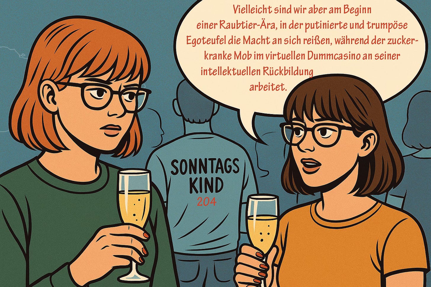 Vielleicht sind wir aber auch am Beginn einer Raubtier-Ära, in der putinierte und trumpöse Egoteufel die Macht an sich reißen, während der zuckerkranke Mob im virtuellen Dummcasino an seiner intellektuellen Rückbildung arbeitet.