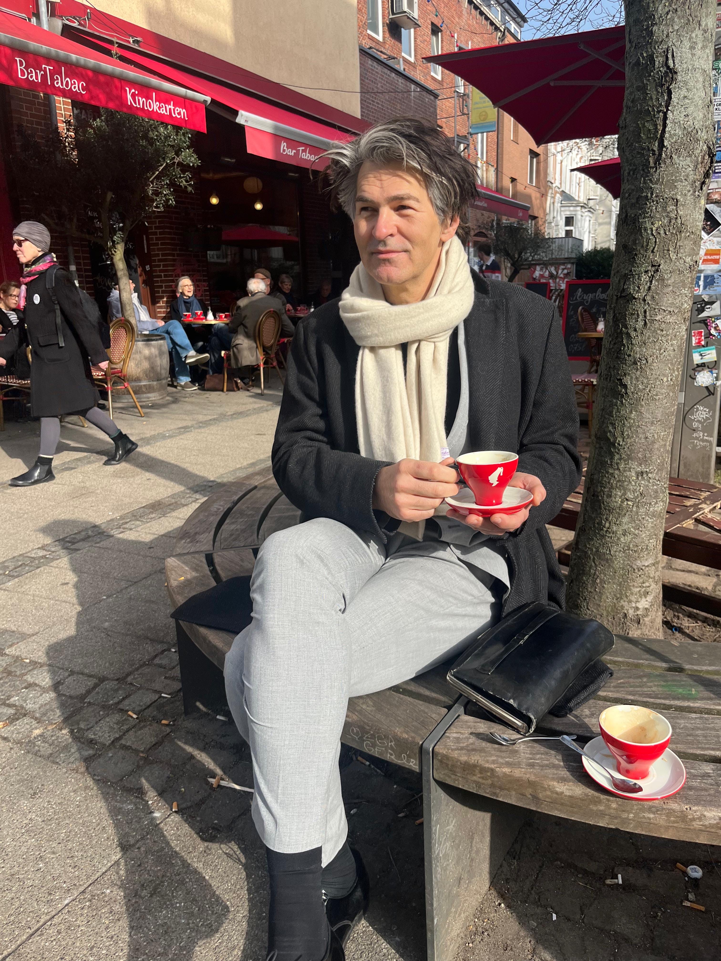 Mit einem Kaffee aus Wien sitze ich auf einer Bank im Bremer Steintor, Vögelchen bezwitschern meine Laune. Ich habe noch Restlaune im Blut, von meinem Konzert gestern im Packhaustheater. Als Zugabe sang ich ein altes Bremen-Lied von mir am Klavier:
