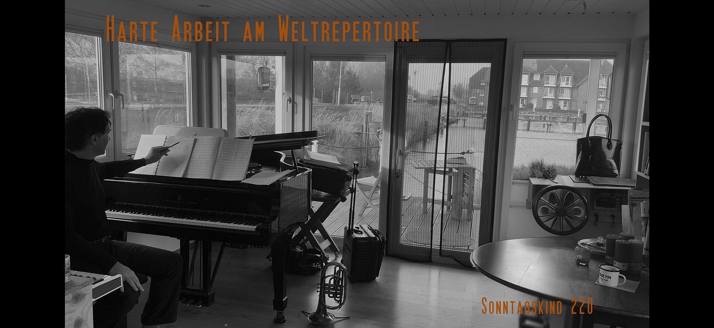 Ich habe mir einen Riesenhaufen „Arbeit“ eingebrockt, als ich meinem Freund Peter Prange, dem hardest working man in Literaturbusiness, vorschlug, auf der Grundlage seiner Romanhexalogie über Deutsche Geschichte einen gemeinsamen Abend zu entwerfen. Jetzt habe ich den History-Salat: In „Deutschland, mon amour“ liest der Titan des historischen Romans aus seinen wanddicken Büchern und ich komponiere mich dazu durchs Zwanzigste Jahrhundert. Erfinde europäische Walzer, germanische Fanfaren, neudeutsche Kellerhymnen. Was das für eine Art Repertoire ist, das dabei herauskommt? Genau, Sie wissen es …